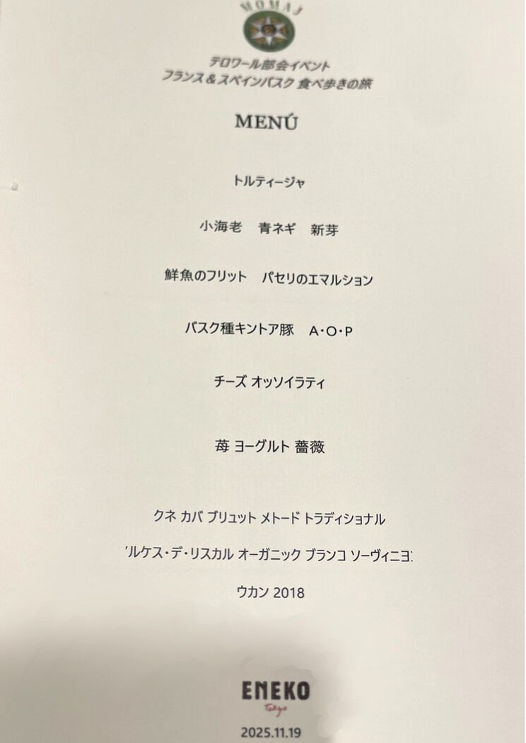 フランス地方の食を紹介するテロワール部会が主催する「フランス&スペインバスク 食べ歩きの旅」が2025年11月19日に「エネコ東京」で行われました。