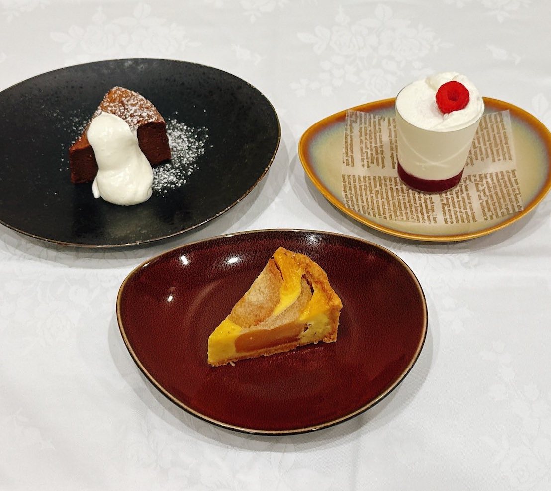 ガトー・ショコラ・ドゥ・ナンシー(ロレーヌ地方)、タルト・アルザシエンヌ(アルザス地方)、クレメ・ダンジュ(ロワール地方)の3種のフランス地方菓子を、ワインやモクテルとペアリングして味わうユニークなアフタヌ―ンパーティーに、定員を越える47名が参加、寺井副会長によるフランス各地方に伝わるお菓子の解説、ブロンドォ ヴァンソン モーリス氏(アンディゴ)よりはワインの説明、そして伊藤道彰氏(円居グループ)からはこの日のペアリングの解説と、楽しく学び味わうひとときとなりました。